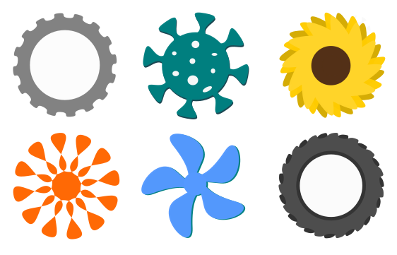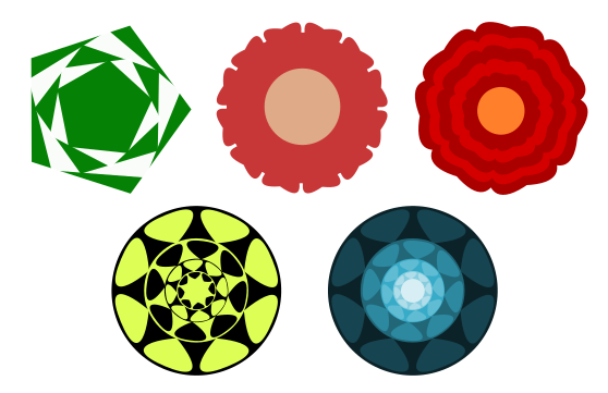 Below are some examples you can create using the Star Tool. Try experimenting with these settings yourself, or watch our Vector Art Examples Using the Star/Polygon Tool tutorial.
